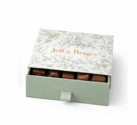 Bonbons de chocolats assortis. Ingrédients : chocolat noir (masse de cacao (fèves de cacao origine Équateur), sucre, beurre concentré (LAIT), beurre de cacao, émulsifiant : lécithines (SOJA), arôme naturel de vanille), sucre, chocolat au lait (sucre, LAIT entier en poudre, masse de cacao (fèves de cacao origine Équateur), beurre de cacao, émulsifiant : lécithines (SOJA), arôme naturel de vanille), chocolat blanc (sucre, beurre de cacao, LAIT entier en poudre, émulsifiant : lécithines (SOJA), arôme naturel de vanille), NOISETTES, pâte de cacao, beurre de cacao, LAIT entier en poudre, beurre de karité, massepain (sucre, AMANDES, sirop de glucose, stabilisant : glycérol de colza, PISTACHES, stabilisant : sorbitols, arôme naturel de pistache), huile de noix de coco, AMANDES, beurre (LAIT), crème (LAIT), huile de tournesol, éclats de crêpes dentelle (farine de BLÉ, sucre, beurre concentré (LAIT), LACTOSE (LAIT), protéines de LAIT, sel, farine d’ORGE malté, poudre à lever : carbonates de sodium), caramel (sirop de glucose, LAIT concentré sucré (LAIT écrémé, sucre), huile de noix de coco, eau, stabilisant : glycérol de colza, émulsifiants : mono- et diglycérides d’acides gras et lécithines (SOJA), sel, arôme naturel), sirop de glucose, stabilisant : glycérol de colza, meringue (sucre, beurre de cacao, amidon de BLÉ, huile de noix de coco, protéines de LAIT, poudres à lever : carbonates de sodium et carbonates d’ammonium, blanc d’OEUF), beurre concentré (LAIT), poudre de cacao dégraissé, stabilisant : sorbitols, confiture de cerises (sirop de glucose et fructose, cerises, sucre, épaississant : pectine, correcteur d’acidité : acide citrique), LAIT écrémé, eau, dextrose, arômes et arômes naturels, poudre de cacao, sirop de sucre inverti, cerises, riz soufflé (farine de riz, sucre, sel, beurre de cacao), émulsifiant : lécithines (SOJA), purée de fruit de la passion (extrait de fruits de la passion, sirop de sucre), purée de pommes, biscuit au beurre (farine de BLÉ, sucre, beurre (LAIT), OEUF, amidon de BLÉ, sel, poudre à lever : carbonates d’ammonium), fèves de cacao, nougat (sucre, sirop de, AMANDES, miel, beurre de cacao, amidon de pomme de terre, blanc d’OEUF, arôme naturel de vanille), noix de coco, sirop de sucre candi, stabilisant : sorbitols, farine de BLÉ, huile de maïs, café, amandes d’abricot, graines de SÉSAME, OEUF, raisins secs, sirop de glucose-fructose, spéculoos (farine de BLÉ, sucre, huile de colza, sirop de sucre candi, beurre concentré (LAIT), poudre à lever : bicarbonates de sodium, sel, cannelle), écorces d’oranges confites (écorces d’oranges, sucre, sirop de glucose-fructose, correcteur d’acidité : acide citrique), NOIX de pécan, thé Earl Grey, blanc d’OEUF, extrait sec de citron, jus de pulpe de cacao concentré, pulpe de cacao, sirop de sucre, amidon de BLÉ, sucre caramélisé, épices (cannelle, clou de girofle), sel de Guérande, mangue, framboises, coriandre, LAIT écrémé en poudre, amidon de riz, sel, correcteurs d’acidité : acide citrique et acide malique, colorant : caramel d’ammonium, extrait de paprika, aliments colorants (concentrés de spiruline, de pomme, de groseille, de radis et caroténoïdes), citron, jus de citron vert concentré, jus de sureau, citron yuzu, gingembre, amidon de tapioca, poudres à lever : carbonates d’ammonium et carbonates de sodium, piment d’Espelette, arômes naturels (cacao, orange, vanille, framboise, yuzu), extrait naturel de vanille Bourbon, matière grasse laitière anhydre (LAIT), huile de citron vert, émulsifiant : lécithine de tournesol, colorant : curcumine, vanille en poudre. Les recettes peuvent contenir des traces d’arachides et d’autres fruits à coque.